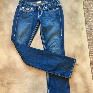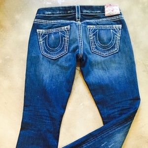 Great fitting True Religion Jeans.. in great condition, does Have worn out areas on the bottom of pant legs, but it is a good look.. (shown in pictures). Great staple item!