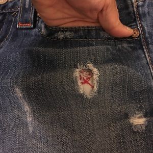 ๐ Super sexy jeans!!! ๐LOVE these, but they no longer fit. Lightly distressed, with one hole near front pocket where Buddha peeks through (view pix). They are slightly flared at bottom, as most TR Bobby jeans are. Inseam is approx 34 inches. Rise is approx 7.5 inches. Cuff is approx 10 inches. 100 % cotton. Thank you for looking! ๐๐ผ๐
