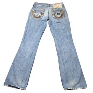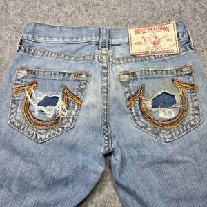 Keywords: True Religion, Jeans, Mens, Denim, Bootcut, Distressed, Rips, Light Wash, USA Made, Designer Jeans, Casual, Fashion, Comfort, Stylish, Y2K