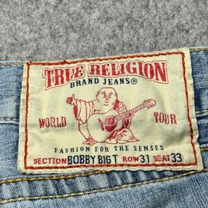 True Religion Jeans Bobby Big T 31x33 Distressed Rips USA Made Denim Bootcut