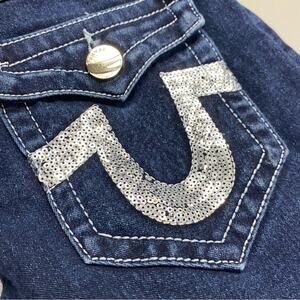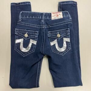 True Religion Jeans Dark Wash Skinny Denim Joey Sequin Logo Pockets Size 25