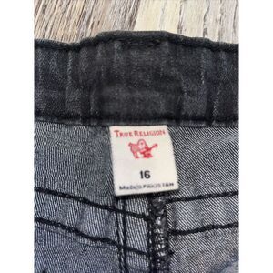 Elevate your little girl's wardrobe with these stylish True Religion Geno Relaxed Slim jeans in size 16. The black color and slimming features make them a versatile addition to any outfit, while the True Religion brand guarantees quality and style. Perfect for any girl who wants to look fashionable and feel comfortable. These jeans are a must-have for any wardrobe.