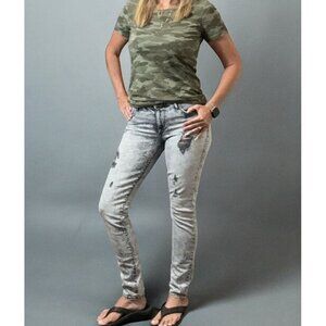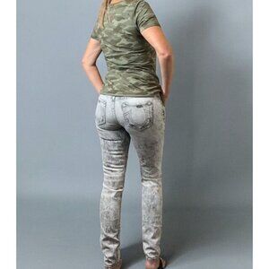 True Religion Jeans Halle Mid Rise Super Skinny Acid Wash size 27 Destroyed