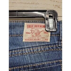 True Religion junior size 13/14 mid rise cropped jeans with small side slits. Medium wash, zipper and button closure, embroided back pockets with True Religion logo on back waist. Wash and wear condition. See pictures.