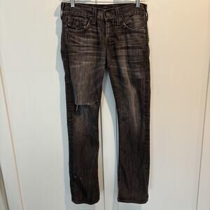True Religion Jeans Men 30x34 Black Ricky Distressed Flap Pockets Selvedge USA