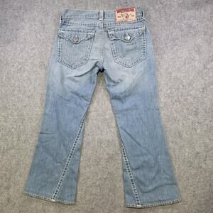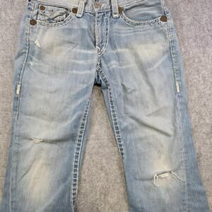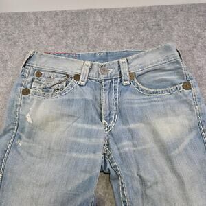 True Religion Jeans Men 33 Light Wash Joey Super T Bootcut Distress Thick Stitch