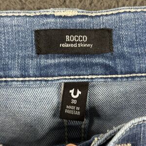 True Religion Jeans Mens 30x32 Blue Rocco Relaxed Skinny Fit Stretch Light Wash