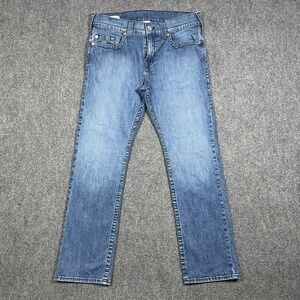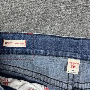 True Religion Jeans Mens 32x31 Blue Denim Ricky Straight Relaxed 0571