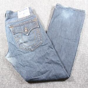 True Religion Jeans Mens 34x32 Blue Straight USA Made 100% Cotton