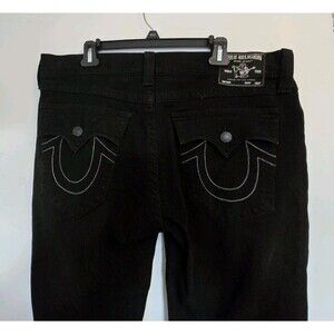 True Religion Jeans Mens 36 Black Rocco Relaxed Skinny Straight Leg Denim Pants