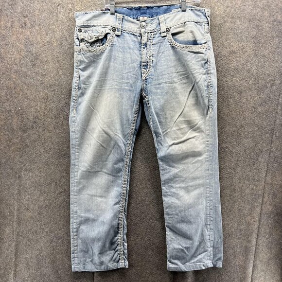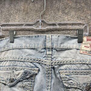 True Religion Jeans Mens 36 Light Wash Section Straight Flap Embroidered