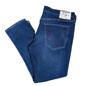 True Religion Jeans Mens 40x32 Stretch Denim Rocco Relaxed Skinny Dark Wash Zip