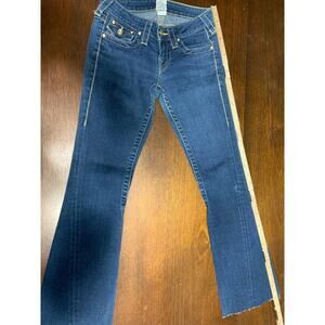 True Religion Jeans Raw Hem Women 25 Y2K Grunge Western Cowgirl Boho Aztec Rodeo