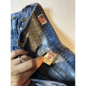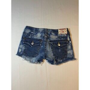 True Religion Jeans Shorts Womens 27 Blue Acid Wash Denim Cut Off Frayed Hem