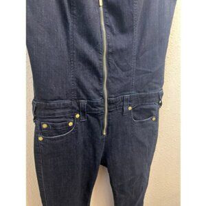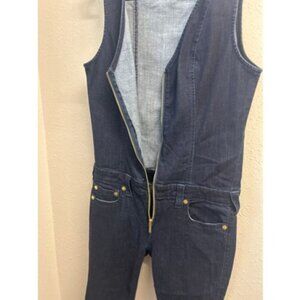 True Religion Jeans Sleeveless Womens Dark Wash Demin Pant Zipper Jumpsuit Sz Lg
