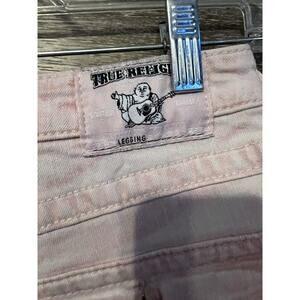 Size 29 and in awesome condition. Add a pop of color to your wardrobe with these True Religion Pink Skinny Jeans Pants. These pants are made from a cotton blend denim fabric that is both comfortable and durable. The mid-rise fit and regular cut make them a flattering choice for any body type.