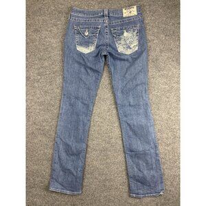 True Religion Jeans Womens 28 Blue Straight Leg Made USA Embroidered Pockets