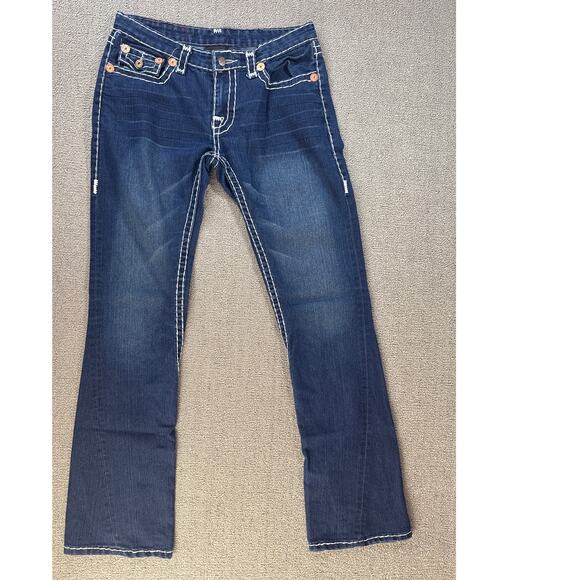 True Religion Jeans Womens 30 Dark Thick Stitch Bootcut Joey Super T Flap Pocket