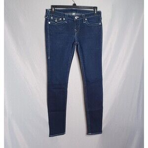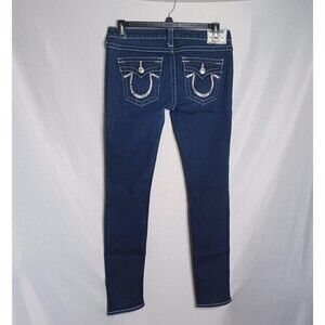 True Religion Jeans Womens 32 Blue Skinny Rhinestone Pocket Stretch Denim Pants