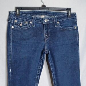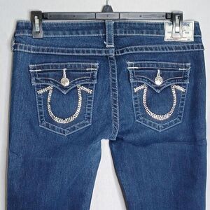 * Branded hardware: True Religion logo buttons, special TR zipper, embroidered patch at back waist