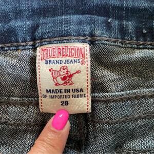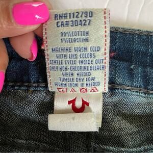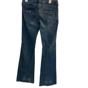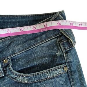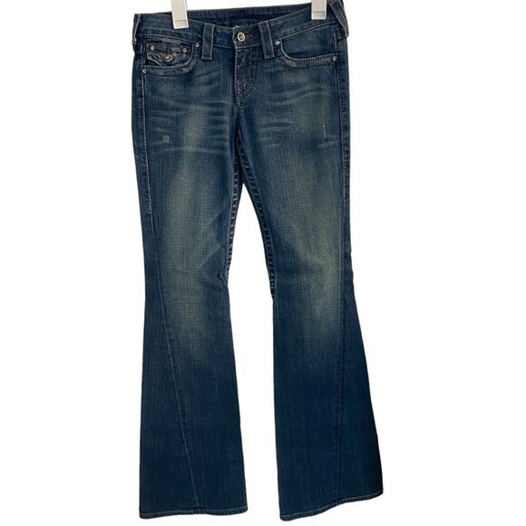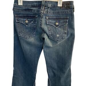 True Religion Jeans Women's Blue Denim Seamed Flare Crystal Buttons Jeans Sz 28