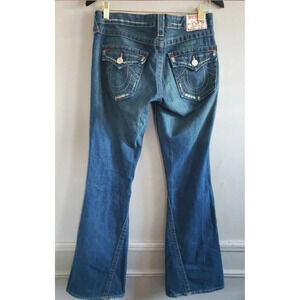 True Religion Jeans Womens Size 28 Blue Bobby Bell Bottom Distressed 100% Cotton