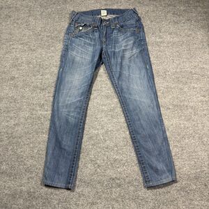 True Religion Jeans Womens 29 Straight Thick Stitch Flap Denim Medium Wash 29x28