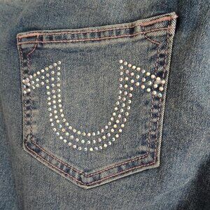 True Religion Jennie Curvy Jeans Women's Size 28x29 Blue Denim Rhinestone Pocket