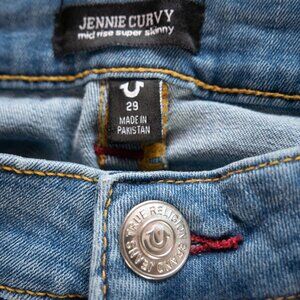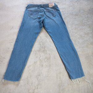 True Religion Jennie Curvy Mid Rise Skinny Jeans | Raw Hem Blue Womenβs Sz 29