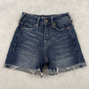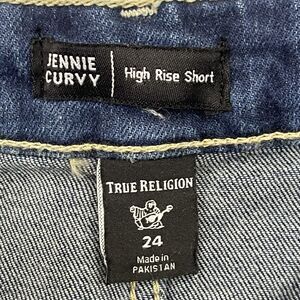 True Religion Jennie Curvy Shorts Womens Size 24 Blue High Rise Distressed