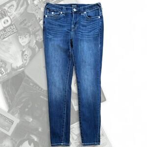 Dark Blue True Religion Jennie Curvy Mid Rise Super Skinny Denim Jeans