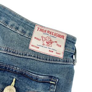 Keywords: True Religion shorts, Jennie short, mid rise curvy denim, women’s jean shorts, flap pocket shorts, festival shorts, designer denim shorts, medium wash jean shorts, summer shorts, casual denim, Y2K
