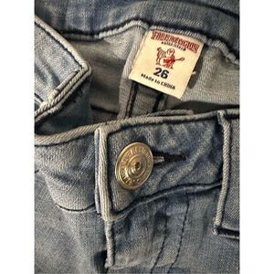 True Religion Jimmy Blue Denim Jeans with True Class large logo embroidered Womens Size 27 approximately 27.5” inseam