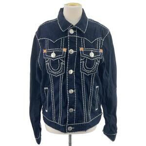 True Religion Jimmy Super T Dark Wash Blue Denim Jean Jacket Cotton Men’s Size S