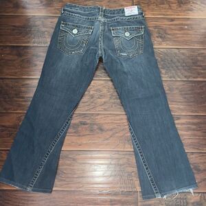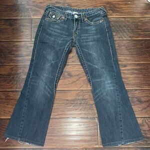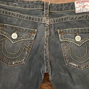 True Religion Joey Super T Distressed Faded Gray Jeans, size 28. Please note: has wear on the bottoms.