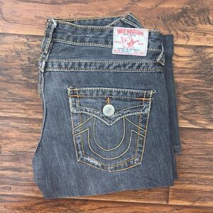 True Religion Joey Big T Distressed Denim Faded Gray Jeans Casual Festival