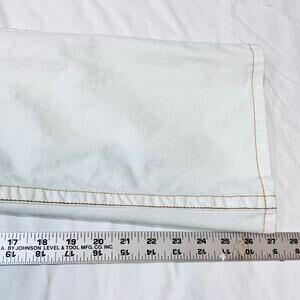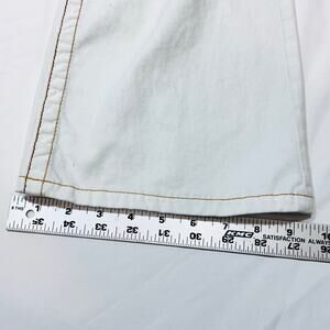 Introducing True Religion Joey Big T Flared Jeans for women, size 28W x 27L, in white with gilded stitching. These used jeans are in great condition and feature the signature True Religion Big T stitching. The flared leg style and white denim give these jeans a bold look.