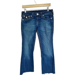 True Religion Joey Flare Cut-Off Crop Jeans Medium Wash Size 29