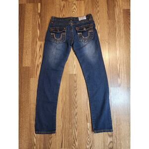 True Religion Joey Super T Orange Stitch Jeans. Size 27. Pre-owned with normal wear, refer to photos.