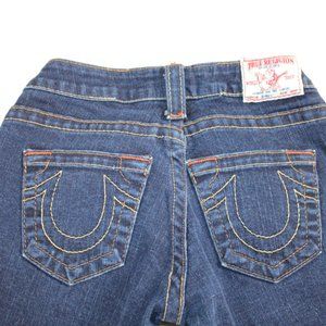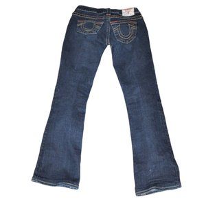 True Religion Johnny Dark Wash Orange & Gold Accent Straight Size 26/30