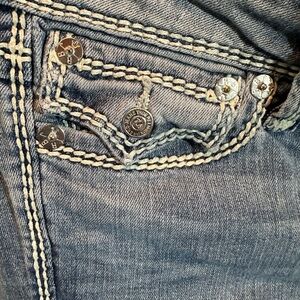 These Vintage True Religion Julie Jeans are a stylish and trendy addition to any woman's wardrobe. The bootcut style, low rise, and light wash give them a retro 90s feel, perfect for those who love the biker, music, and festival themes. With accents like buttons, zippers, and logos, these denim jeans offer both comfort and style. The 5-pocket design and stretch fabric make them practical for everyday wear, while the True Religion brand adds a touch of luxury to the wardrobe staple. Perfect for year-round wear, these jeans are a must-have for fashion-forward women in size 27.