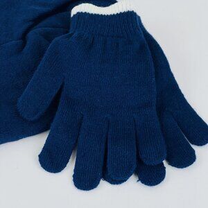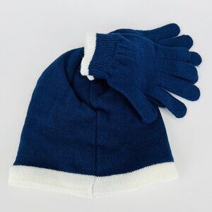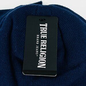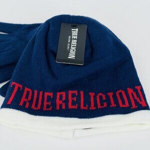 True Religion Kids Beanie & Gloves 2-Pieces Set Blue Red Logo Front One Size NWT