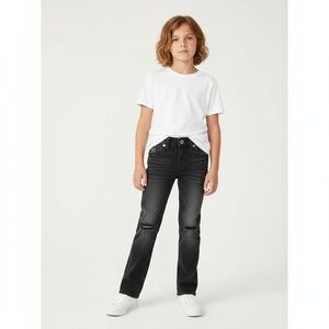 True Religion Kids Jeans Size 7 Black Dark Grey Distressed Button Fly Casual Tre