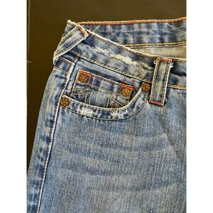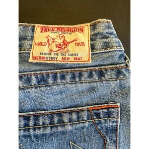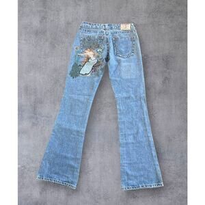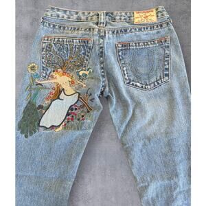 True Religion Lady Godiva Embroidered Bobby Flare Jeans Size 27 2000s Y2K Denim