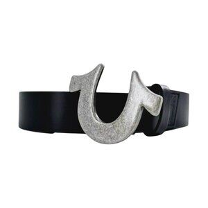 True Religion Leather Belt Heavyweight Horseshoe Buckle Black