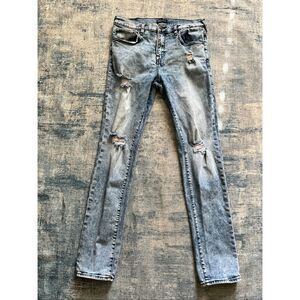 True Religion Light Distressed Wash Rocco Relaxed Skinny Jeans 32 x 34