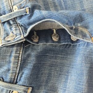 True Religion Liv low-rise relaxed distressed skinny jeans. Size 28. Button fly. These have some damage on the bottom front and back of the right leg (they may have been distressed already) and light distressing to the back of the pockets. Please see photos. No other flaws! No stains or pulling near the gusset. The jeans could be rolled, covered up by boots, embroidered over, or cut off if you want to get rid of the holes if you want. Medium blue wash. Some stretch.