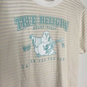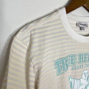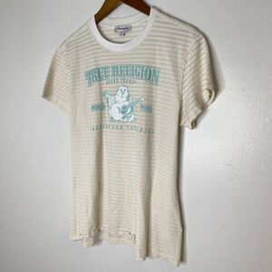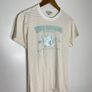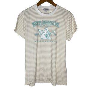 True Religion Logo Buddah Striped Short Sleeve Shirt Size Medium Women’s