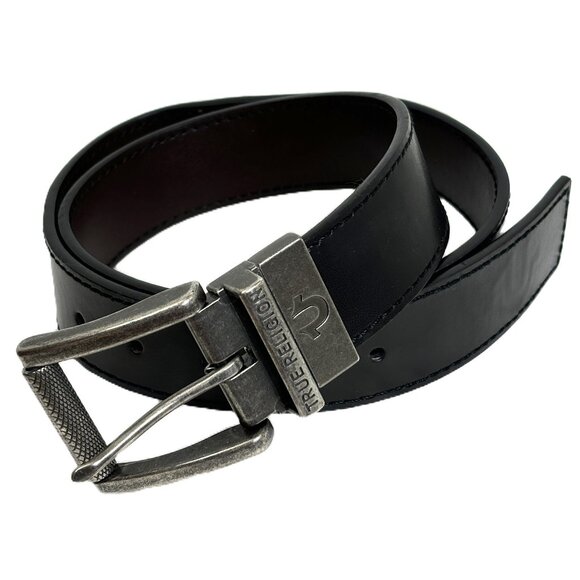 True Religion Lumin II Reversible Blk/brwn Roller Twist Simulated Leather Belt