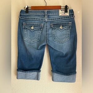 True Religion Medium Wash Mid Rise Denim Knee Length Cuffed Bermuda Shorts 29